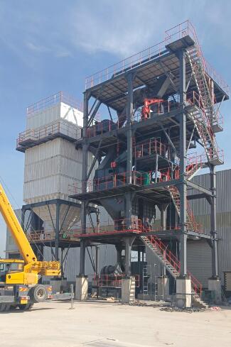 原料經(jīng)過(guò)電子秤進(jìn)入到皮帶輸送機(jī)中,由全封閉的提升機(jī)將物料入到五孔碾磨制砂機(jī)內(nèi)進(jìn)行破碎處理,再由空氣篩對(duì)破碎后的物料進(jìn)行篩分、選粉處理,篩分后的較大物料會(huì)返回五孔碾磨制砂機(jī)中進(jìn)行二次破碎,符合要求的砂子則經(jīng)過(guò)加濕拌合機(jī)由傳送帶輸送至成品倉(cāng)中;篩分過(guò)程中的粉塵會(huì)經(jīng)粗細(xì)粉分離機(jī)進(jìn)入到布袋收塵器內(nèi),而其中較大的粗顆粒會(huì)在粗細(xì)粉分離機(jī)的作用下,按需求在成品砂中進(jìn)行回?fù)剑?xì)粉塵將通過(guò)風(fēng)力進(jìn)入到布袋收塵器,作為副產(chǎn)品進(jìn)行使用。